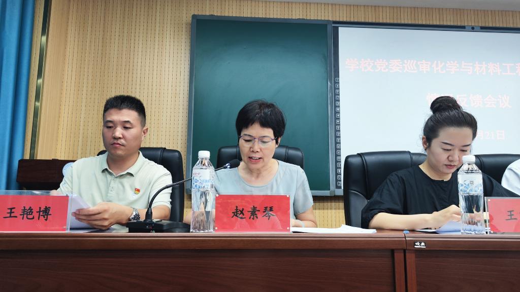 张晓蕊同志代表学校党委第一巡察组反馈对yl9193永利集团党委的巡察意见、赵素琴同志代表专项审计组反馈专项审计意见。